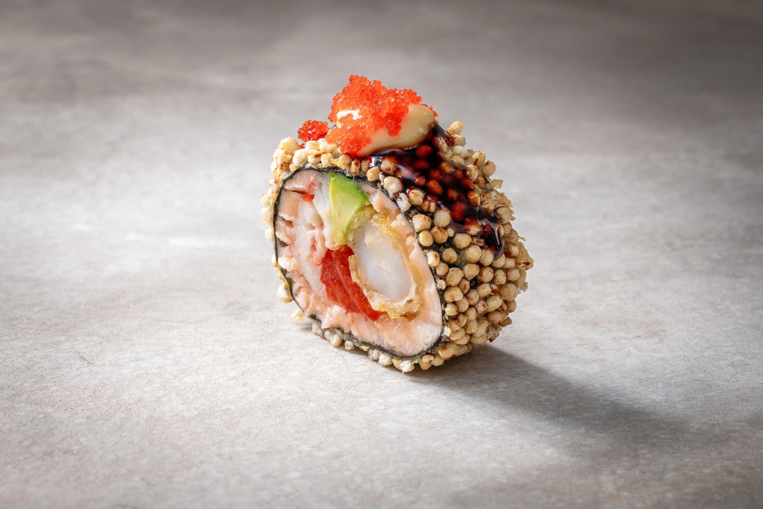 Nori Cheese: lazac, sajt, avokádó, tempurában sütve, édes szója, puffasztott quinoa / Crispy Sake Avocado: lazac, avokádó, teriyaki, gyömbér chips / Mayo Hiyoko: bundázott csirkemell, répa, uborka, saláta, avokádó, japán majonéz / 4-4 darab