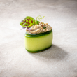 Kacsamáj mousse, sült paprika, snidling, avokádó, uborka, teriyaki, sült hagyma