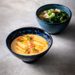 Kókusztejes vörös currys alap, bébikukorica, mungóbabcsíra, shimeji gomba, újhagyma, koriander, lime, kínai tészta