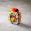 Bundázott garnéla, tonhal, avokádó, uborka, sült paprika, chili szósz, puffasztott vadrizs.