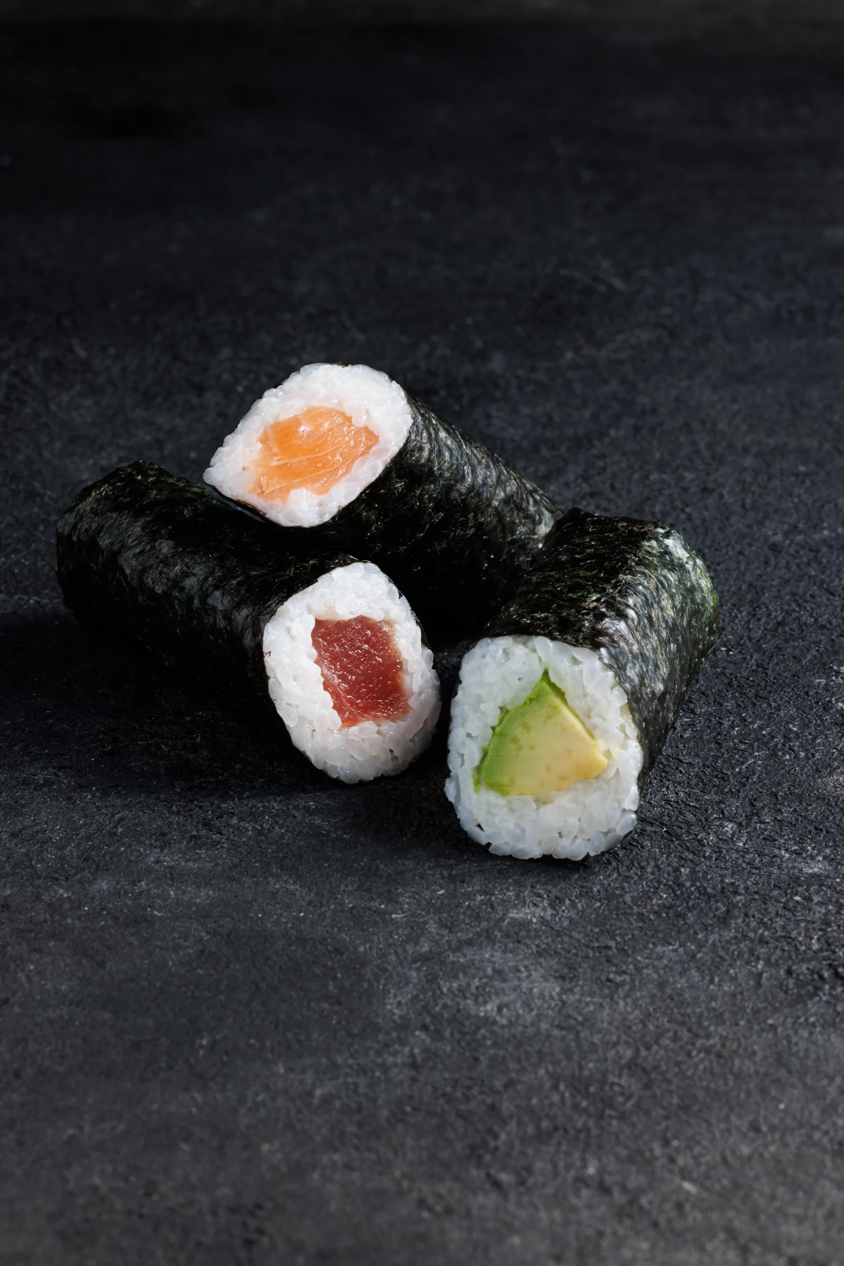 Lazac, tonhal, avokádó, uborka hosomaki – 3-3 db.