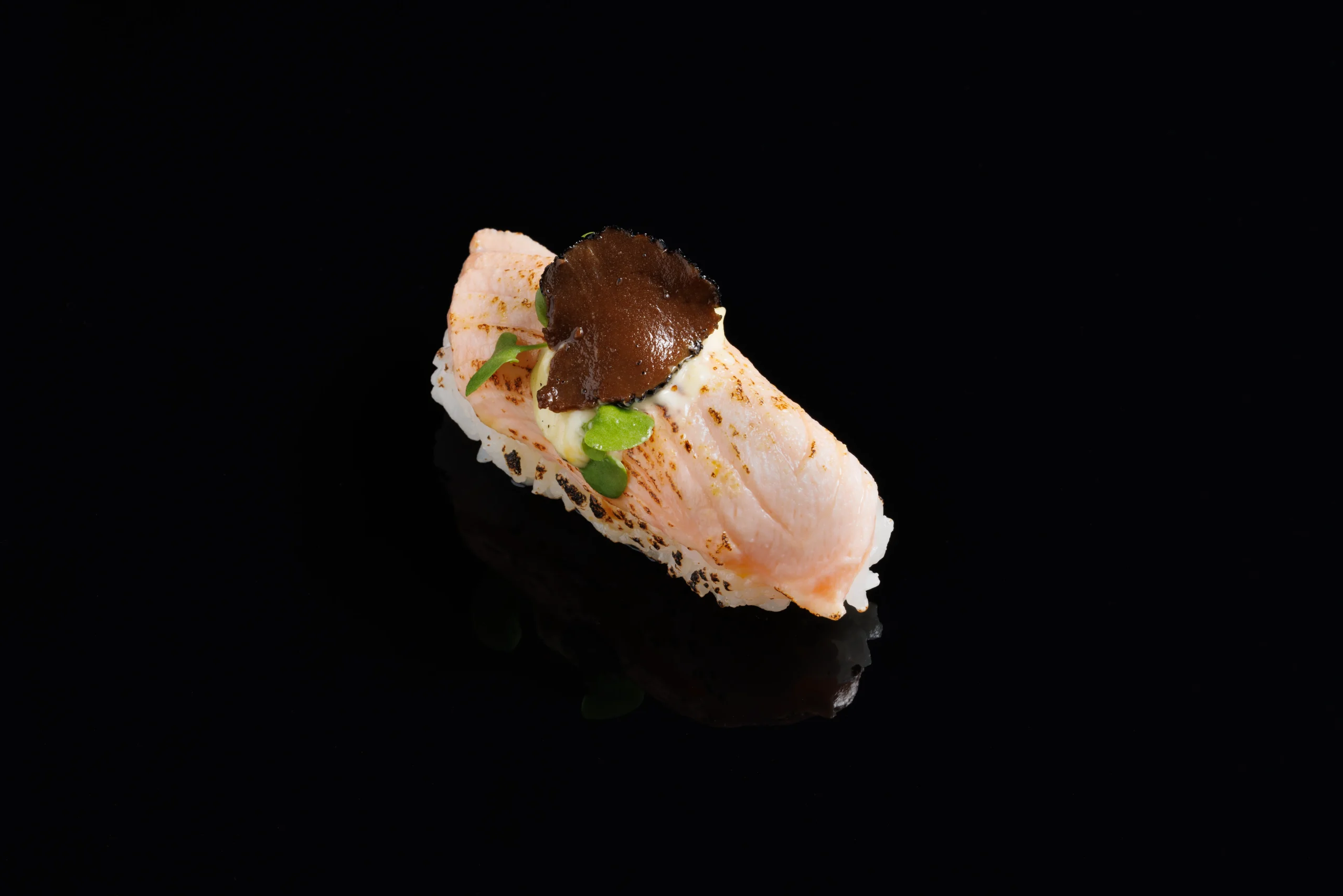Salmon, smoked salmon, cream cheese, cucumber, asparagus, Japanese mayo, truffle caviar