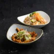 Ropogós garnéla, zöldfűszeres kesudiós curry, udon tészta, kókusztej, chili, lime levél, brokkoli, bébiparaj, újhagyma, cukorborsó, bazsalikom, koreai chili.