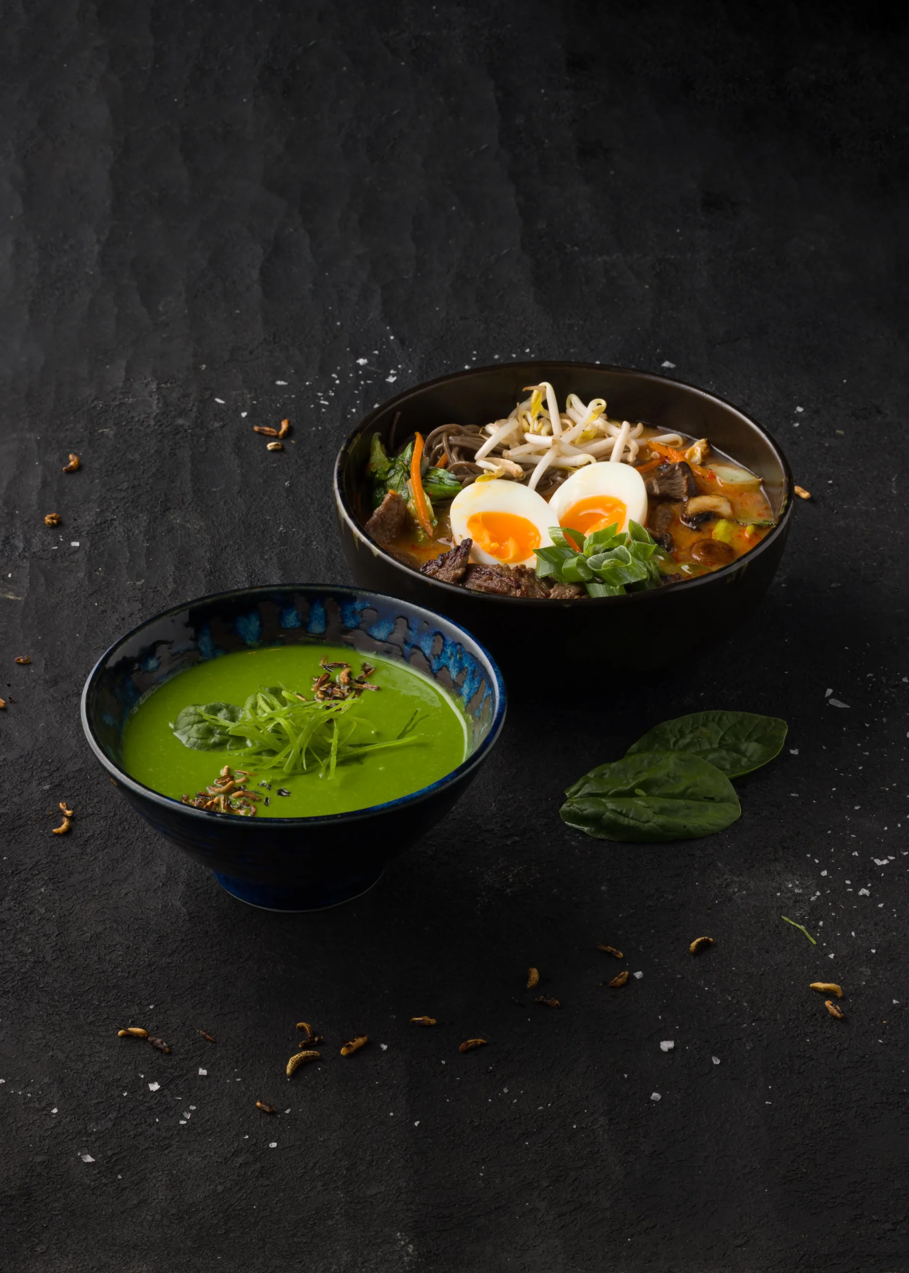 Fűszeres miso paszta húsalaplével, mungóbabcsírával, répával, pak choi-jal, gombával, újhagymával, tojással és soba tésztával.